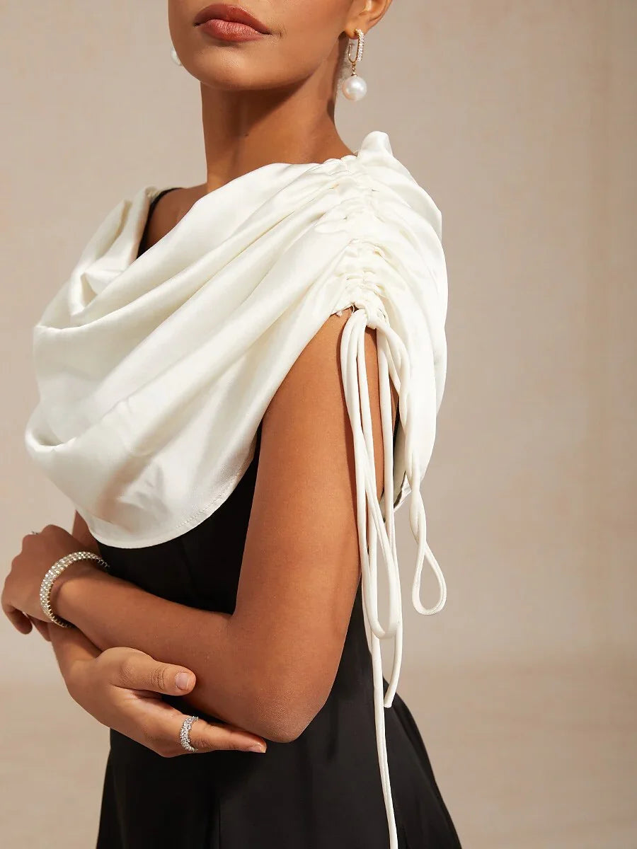 Satin Black and White Dress with Shoulder Tie Design